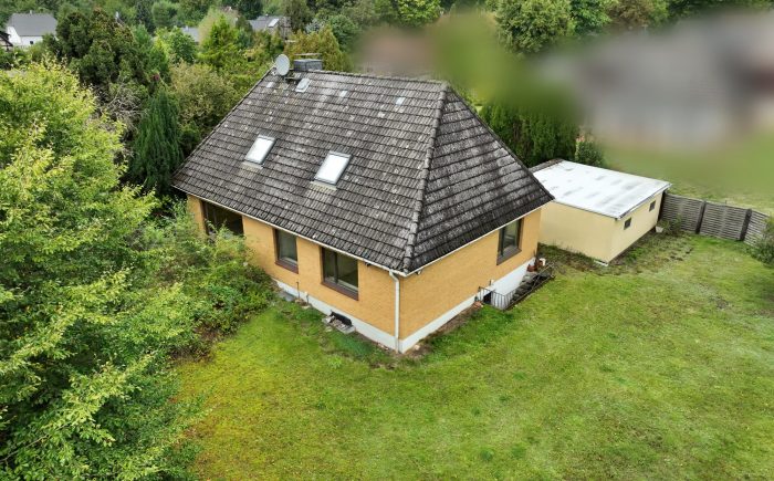 Die hier angebotene Immobilie wurde 1972 in 1-geschossiger Bauweise mit ausgebautem Dachgeschoss und einem Vollkeller errichtet. Das Gebäude verfügt eine Klinkerfassade und ein pfannengedecktes Walmdach. Neben dem Wohngebäude steht auf dem Hof eine massive Doppelgarage zur Verfügung. Das konventionell errichtete Wohngebäude hat eine Gesamtwohnfläche von rd. 150 m². Das geräumige Erdgeschoss mit ca. 99 m² Wohnfläche verfügt über 3,5 -Zimmer, Küche, Vollbad und ein Gäste-WC. Ein direkter Zugang in den Vollkeller ist sowohl über das Erdgeschoss als auch über eine Außentreppe möglich. Das Obergeschoss wurde als Einliegerwohnung mit 2 Zimmern, Küche und einem Vollbad konzipiert, die Wohnfläche beträgt ca. 51 m². Die Beheizung und Warmwasserversorgung erfolgt über eine ältere Ölzentralheizung mit 3 Batterie-Kellertanks á 1.500 Liter. Das Gebäude ist derzeit unbewohnt und kann kurzfristig übernommen werden. Die Ausstattung entspricht dem Baujahr, wie auch der allgemeine energetische und dekorative Zustand. Es besteht die Möglichkeit, dass Grundstück weiter zu bebauen oder alternativ einen Bauplatz abzutrennen. Das Flurstück 42/2 liegt im derzeit geltenden Bebauungsplan „Dorf“ von Marxen und zwar in der Teilfläche 3. Diese weist folgende Ausweisung auf: Mindestgröße 900 m² – GRZ (Grundflächenzahl) 0,15 – pro 500 m² Grundstücksfläche ist 1 Wohneinheit zulässig. Eine GFZ (Geschossflächenzahl) ist nicht ausgewiesen. Für weitere Information oder die Vereinbarung einer Besichtigung stehen wir Ihnen gern zur Verfügung. Diese Immobilie wird im Gemeinschaftsgeschäft der Firmen Peter Börke Immobilienvermittlung und Erdtmann Immobilien, Jesteburg zum Kauf angeboten.