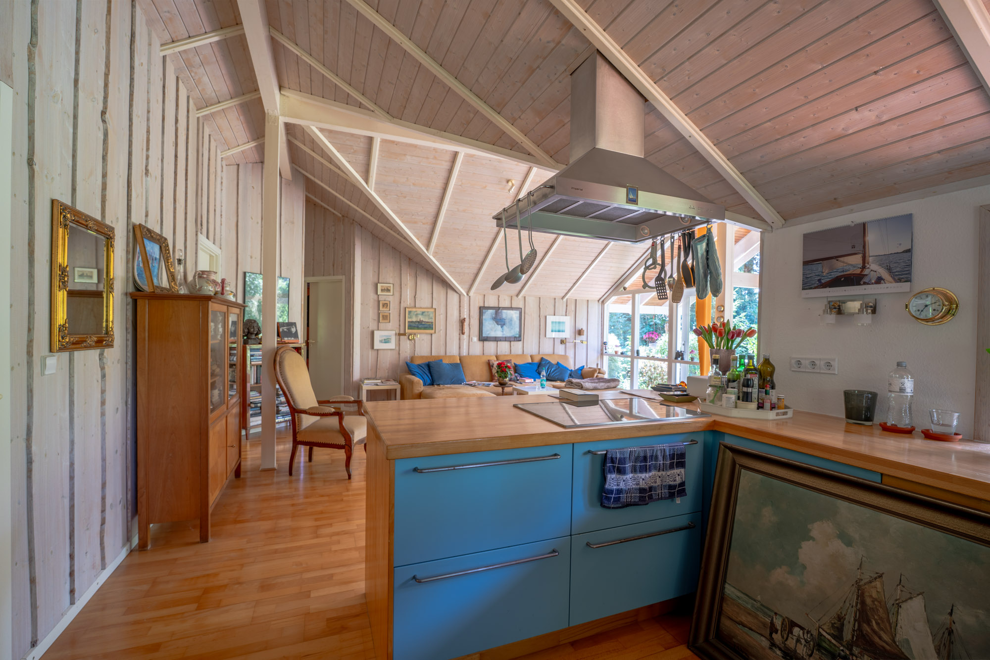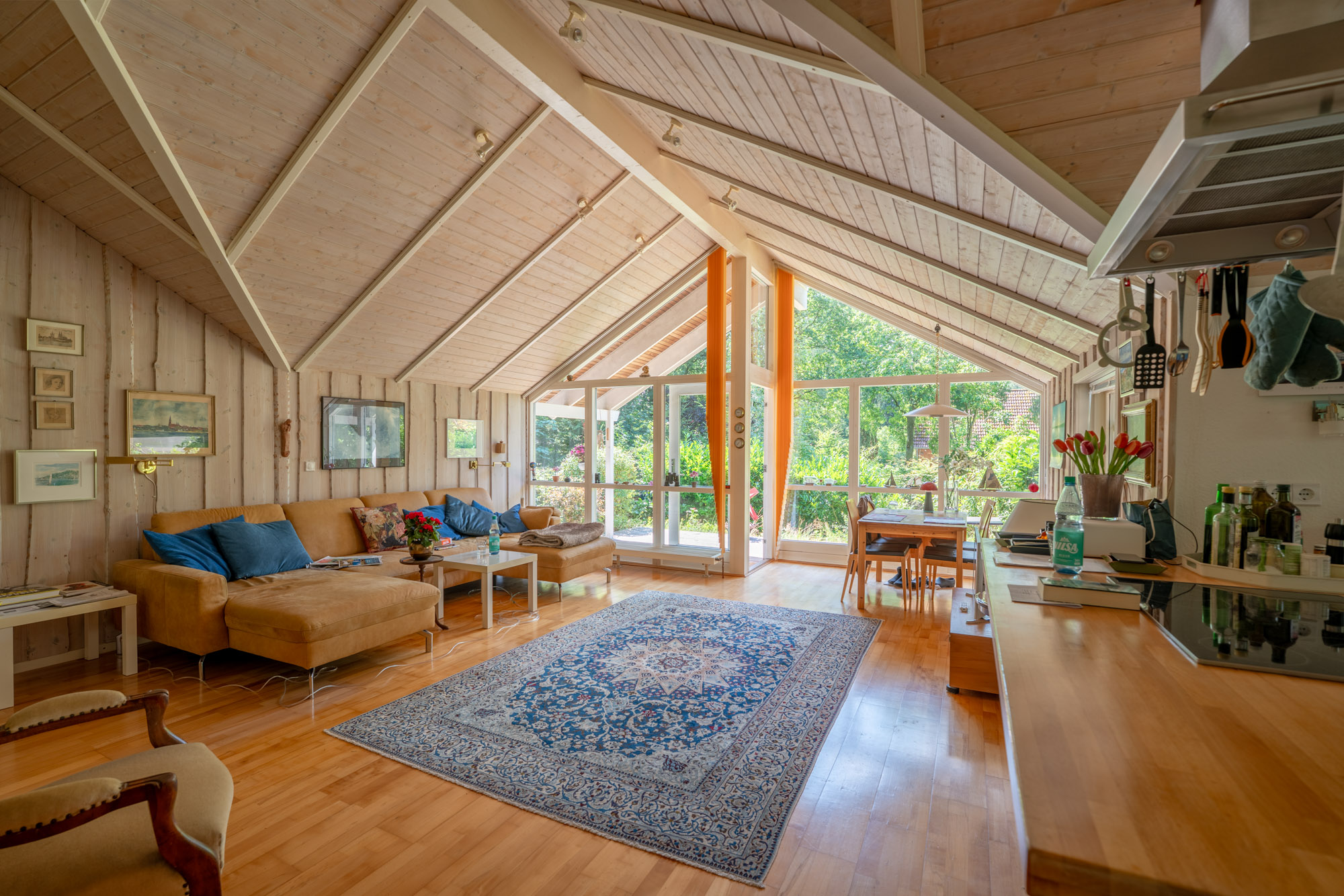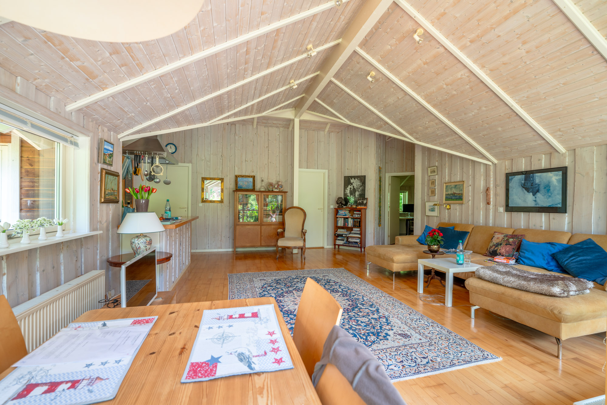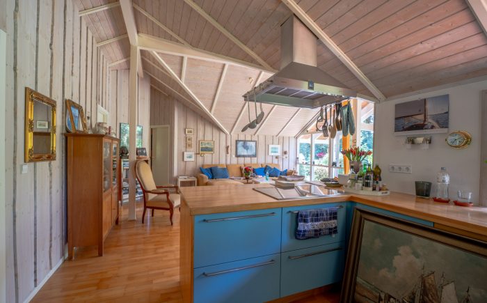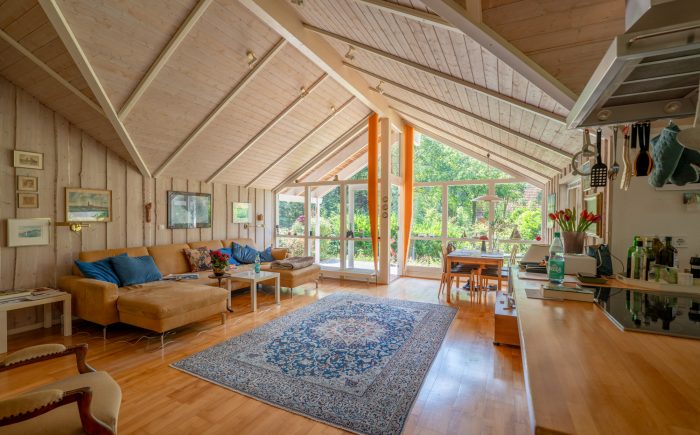 Der charmante dänische Bungalow wurde im Jahr 1998 in hervorragender Bauweise als „Niedrigenergiehaus“ auf einem 957m² großen Grundstück errichtet. Die Holzfassade präsentiert sich in Kombination mit den weißen Sprossenfenstern + Landhaustüren zeitlos. Der Garten wurde überwiegend naturbelassen. Die Wohnfläche des Hauses beträgt ca. 110 m² und verteilt sich auf 3,5 Zimmer, 1 Bad mit integrierter Sauna, die offene Küche sowie einem Hauswirtschaftsraum. Das Haus besticht durch seinen gut durchdachten Grundriss, kombiniert mit geschmackvoller Ausstattung. Durch die geräumige Eingangsdiele/Hauswirtschaftsraum betritt man das Haus. Besonders ansprechend ist der großzügige Wohn-Essbereich mit offener Küche. Die wertige Wohnküche ist im Landhausstil gehalten und lässt keine Wünsche offen. Dem Wohnbereich vorgelagert, befindet sich eine sehr sonnige und teilweise auch überdachte Terrasse, die zum Verweilen einlädt. Die Süd-Westlage gewährleistet eine optimale Belichtung des Wohnbereiches. Helle Töne und Holzparkett prägen das moderne Erscheinungsbild. Weiterhin stehen im Erdgeschoss zwei Schlafzimmer und ein kleines Büro oder Gästezimmer zur Verfügung. Das geräumige Duschbad, mit barrierefreier Dusche und Fußbodenheizung, verfügt weiterhin über eine Sauna, die insbesondere in der kalten Jahreszeit für Entspannung und Erholung sorgt. Die Erwärmung und des Hauses erfolgt über eine ältere Gasbrennwertheizung, die Warmwasseraufbereitung wird durch Solarthermie unterstützt. Ein sehr gesundes Raumklima ist durch die skandinavische Bauweise gewährleistet. Alle Fenster sind zweifachverglast. Ein Gartenhaus rundet den hervorragenden Eindruck des Objektes ab. Die aktuellen Eigentümer (beide Ende 70 ) beabsichtigen, das Objekt zunächst als Mieter weiter zu nutzen. Ein entsprechender Mietvertrag soll in Verbindung mit einem Kaufvertrag abgeschlossen werden.